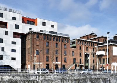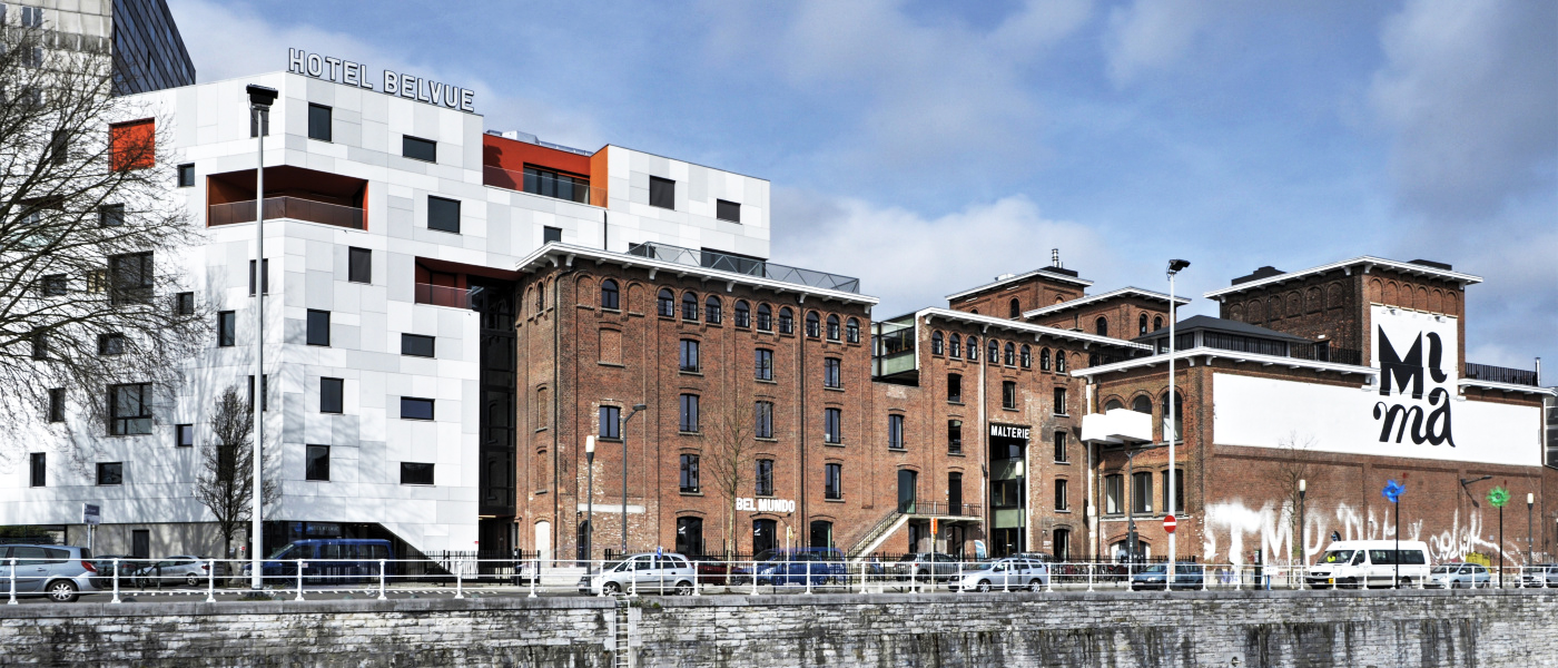 La construction de l’hôtel BELVUE s’insère sur le site des anciennes brasseries Bellevue.  Cet hôtel est un concept totalement innovant puisqu’il est non seulement un équipement touristique de qualité, avec une salle de séminaire, mais aussi un espace de formation pratique professionnelle aux métiers de l’hôtellerie et de l’Horeca.