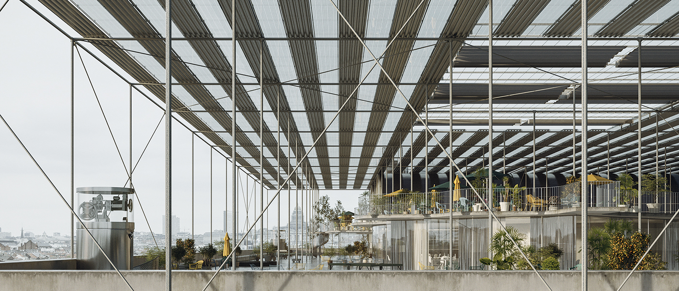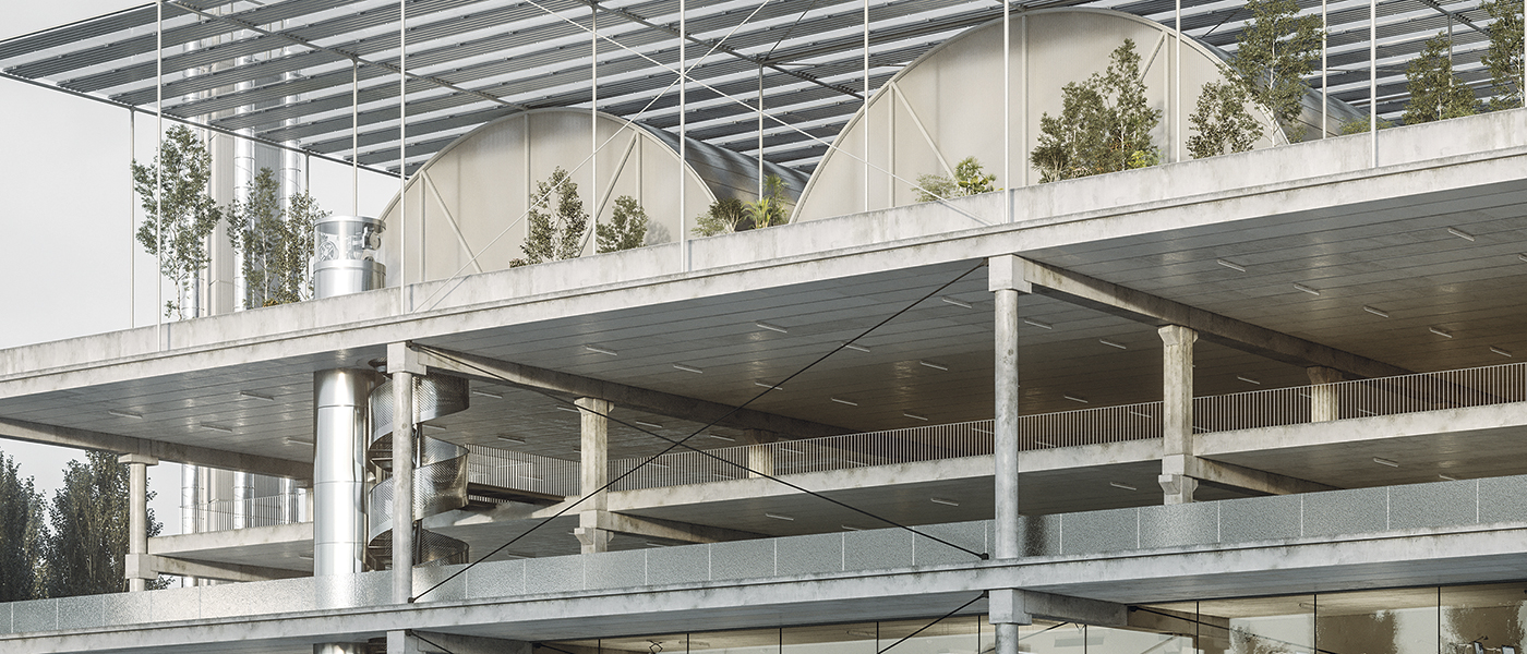 Cette infrastructure sera utilisée dans le secteur et les secteurs connexes. En outre, il servira également à des fins administratives, d’éducation et / ou de logement. Le toit est équipé comme un toit et / ou un jardin productif.