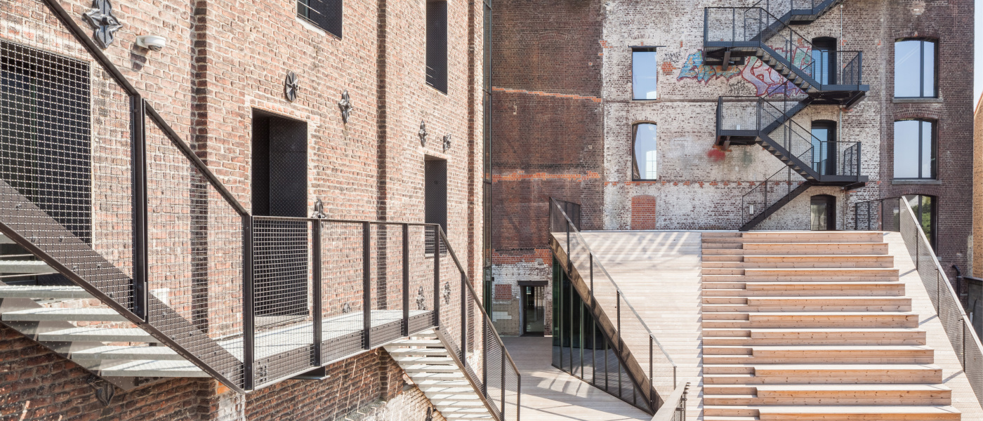 The COOP, a 5.099m² site bordering the canal in Anderlecht, is open since October 2016. The former Moulart mill has been completely converted into an economic and cultural centre, both a place of work and learning.