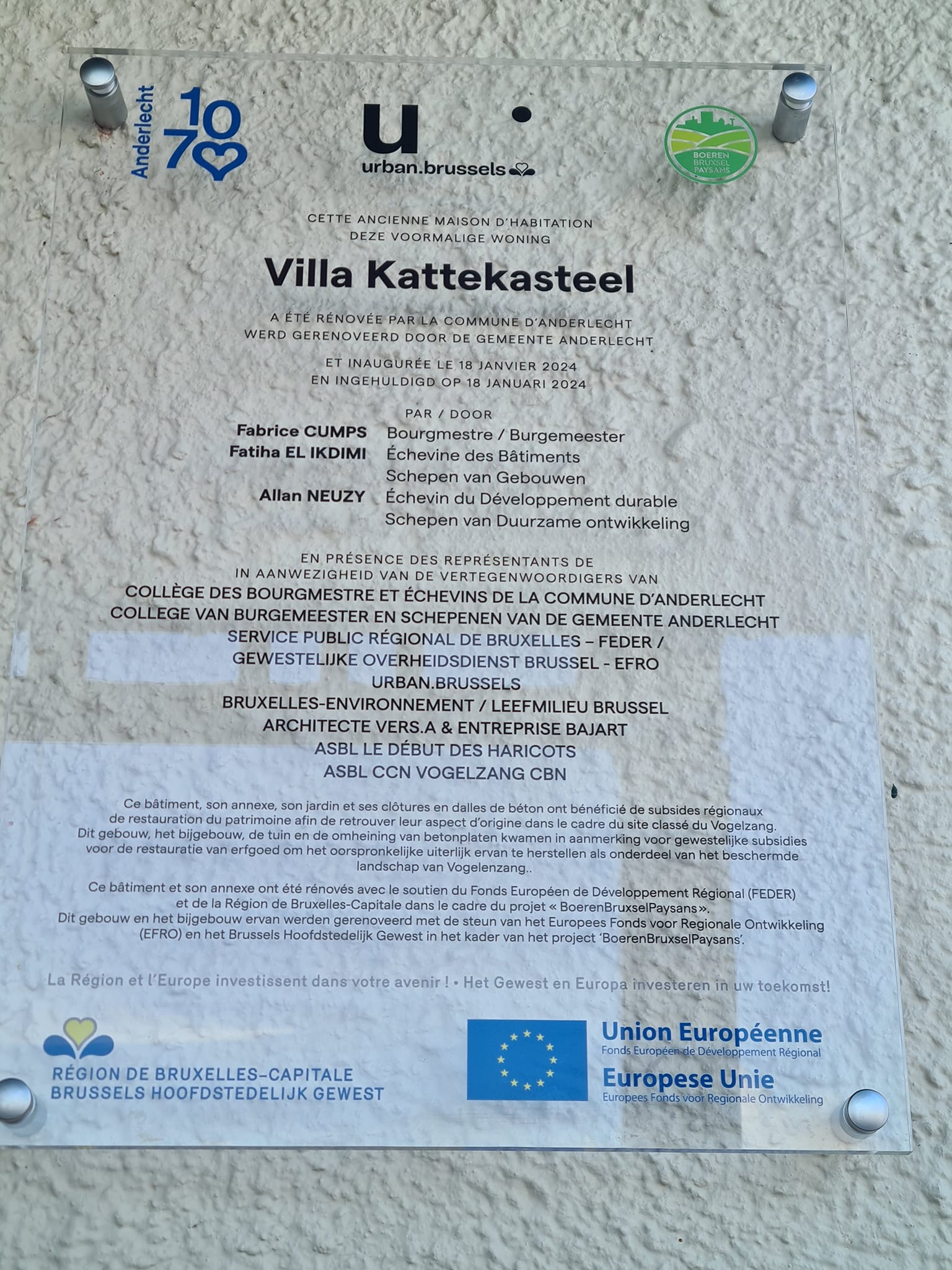 L’ASBL Le début de haricots, qui exploite un terrain d’environ 4 hectares pour son projet « Espace Test Agricole », et l’association CCN Vogelzang, qui gère la réserve du même nom, cohabiteront dans la villa Kattekasteel.