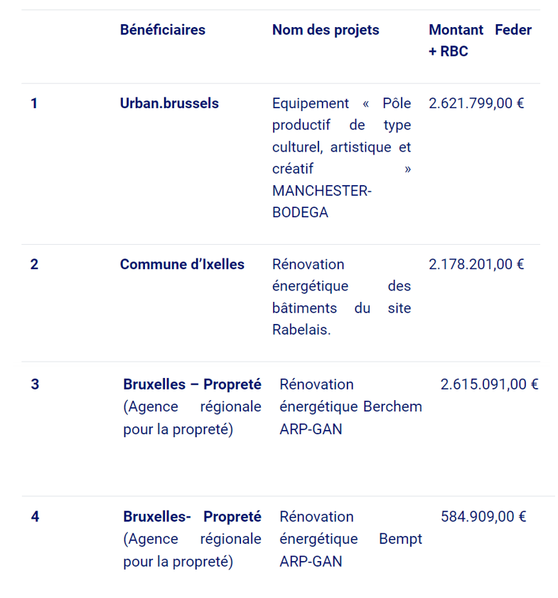 Ces projets font partie du programme bruxellois FEDER 2021-2027 qui dispose d’un budget de plus de 300 millions d’euros dont 121,3 sont apportés par l’Union européenne.
